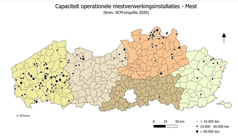Momenteel zijn er in Vlaanderen 143 operationele mestverwerkingsinstallaties actief, waarvan de gegevens van 137 installaties werden opgenomen in het rapport. Van deze 137 installaties bevinden zich er 74 in West-Vlaanderen en 34 in provincie Antwerpen. 122 installaties staan in agrarisch gebied en 15 op een bedrijventerrein.